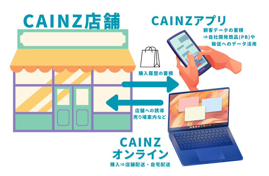 CAINZの最大の特徴は、「リアル店舗を起点」にしたOMO(Online Merges with Offline)戦略です。
