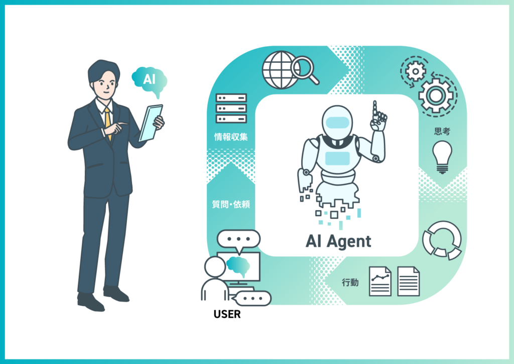 AIエージェントは、段取りを自ら考えながら仕事を進めます。情報を集め、比較し、判断材料を整理したうえで、次に取るべき行動まで示します。