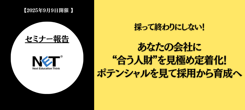 - 【動画あり】セミナー報告 採って終わりにしない! あなたの会社に“合う人財”を定着化!ポテンシャルを見て採用から育成へ|2025年9月セミナーダイジェスト